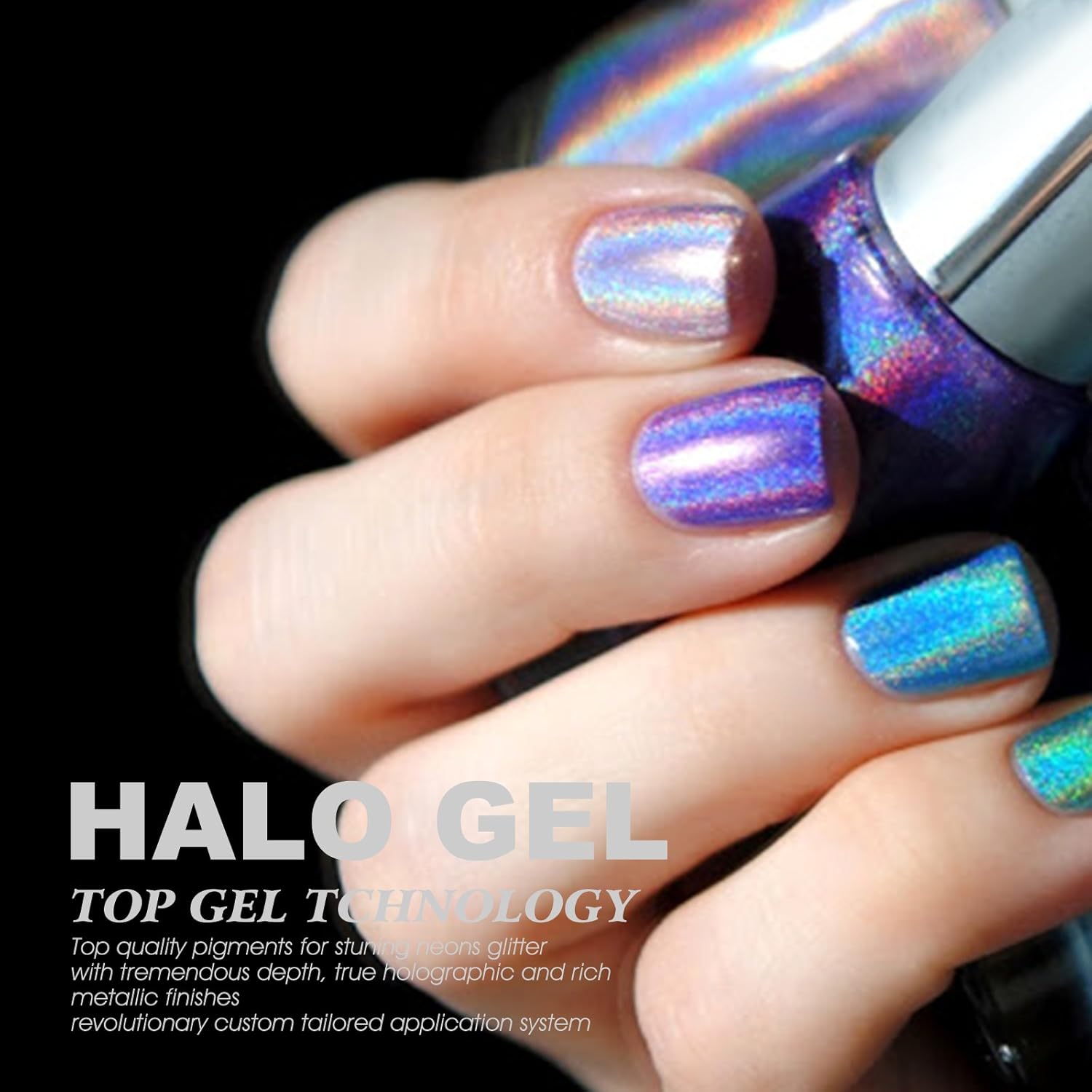 They have an incredible range of Halo colours to choose from and its a lot easier than the way I used to do it by rubbing metal flake powders into the inhibition layer of the gel; its a gorgeous simple UV polish!